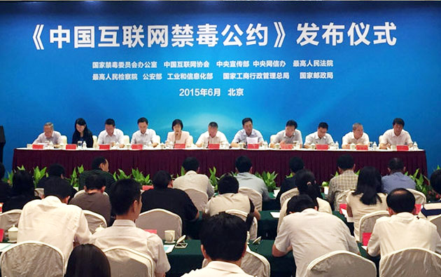 2015年6月29日,國家禁毒委員會(huì)辦公室牽頭會(huì)同中央宣傳部、中央網(wǎng)絡(luò)安全和信息化領(lǐng)導(dǎo)小組辦公室、最高人民法院、最高人民檢察院、公安部、工業(yè)和信息化部、國家工商行政管理總局、國家郵政局和中國互聯(lián)網(wǎng)協(xié)會(huì),在北京聯(lián)合發(fā)布《中國互聯(lián)網(wǎng)禁毒公約》(以下簡稱《公約》)。50家國內(nèi)主要互聯(lián)網(wǎng)企業(yè)以及5家寄遞企業(yè)負(fù)責(zé)人現(xiàn)場(chǎng)簽署承諾書,宣誓對(duì)網(wǎng)絡(luò)涉毒問題保持“零容忍”。
