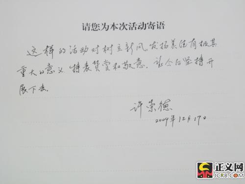 寄語:這樣的活動對樹立新風(fēng),發(fā)揚美德有極其重大的意義,特表贊賞和敬意,望今后堅持開展下去。