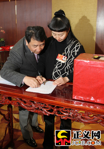 有關媒體報道貧困地區十萬小學生中有九萬手中無字典現象,希望能得到社會幫助。3月12日,在姜昆委員的呼吁下,中國文學藝術基金會在代表、委員中間開展向貧困地區小學獻愛心“字典援助活動”,代表委員們紛紛慷慨解囊,積極捐款捐書。圖為“字典援助活動”現場。徐伯黎/攝