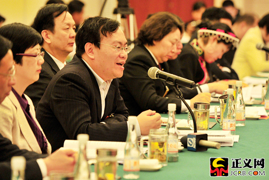 今天下午,福建代表團舉行全體會議審議兩高報告全國人大代表、華僑大學法學院副院長戴仲川在發言時說,今年兩高報告亮點多,內容具體詳實。報告回應了群眾對司法公正的訴求,也反映了司法機關在各方面所做的不懈努力。正義網記者 程丁 攝