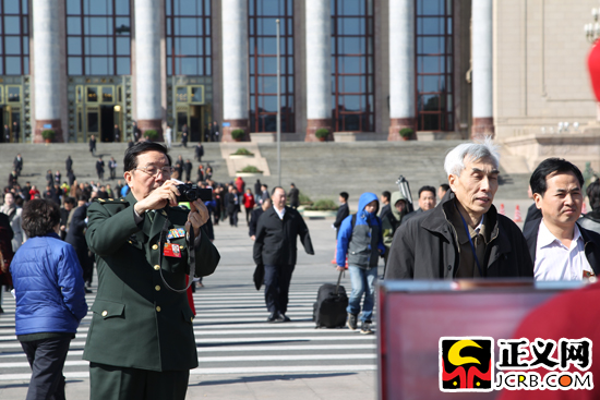 全國政協十一屆五次會議于3月11日上午9時在人民大會堂舉行第四次全體會議,多名政協委員就有關議題作大會發言。圖為大會堂外參會委員的風采。正義網記者 徐伯黎/攝