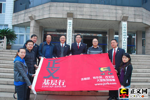 12月7日下午,正義基層行到達(dá)南通市通州區(qū)人民檢察院,檢察長(zhǎng)李建國(guó)正在正義基層行旗幟上簽名。 張慶