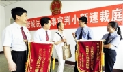 12月4日上午,新鄭市人民檢察院檢察長翁波在正義基層行旗子上簽字。